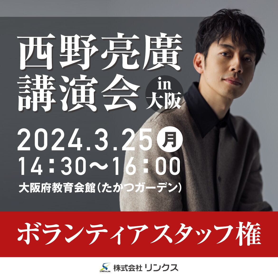 2024年3月に開催予定の「西野亮廣講演会in 大阪(教育関係者向け)」のボランティアスタッフ権です。